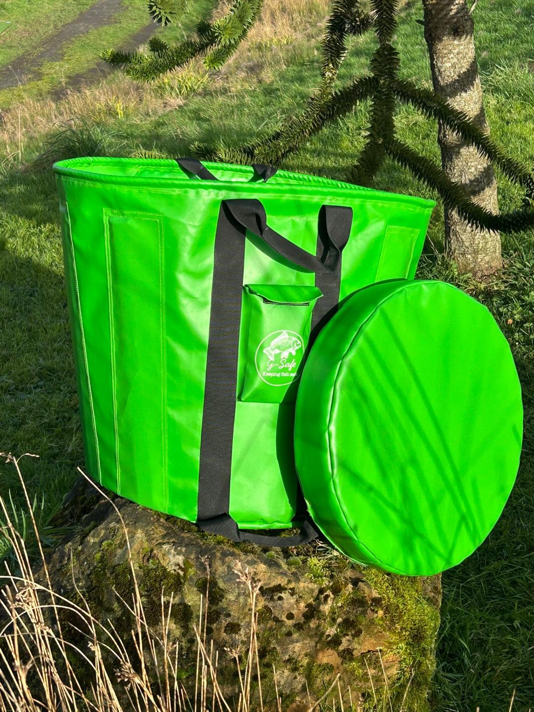 Images of our G-Safe Weigh Bag and our Carp Care Kit, both essential items to ensure fish welfare is prioritised.